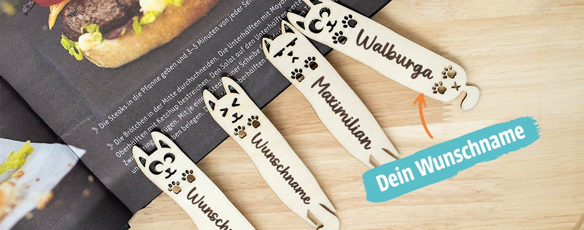 Unsere Tier-Lesezeichen aus Holz mit Hundemotiv oder Katzenmotiv sind der Knaller für alle Leseratten mit Tierliebe. Und wenn dann noch der Name des pelzigen Lieblings draufsteht? Herzklopfen vorprogrammiert.