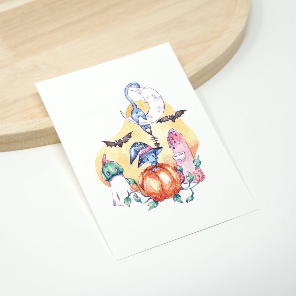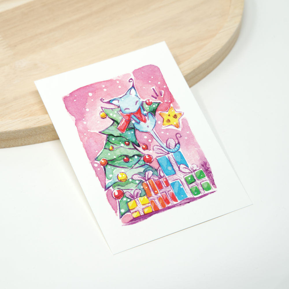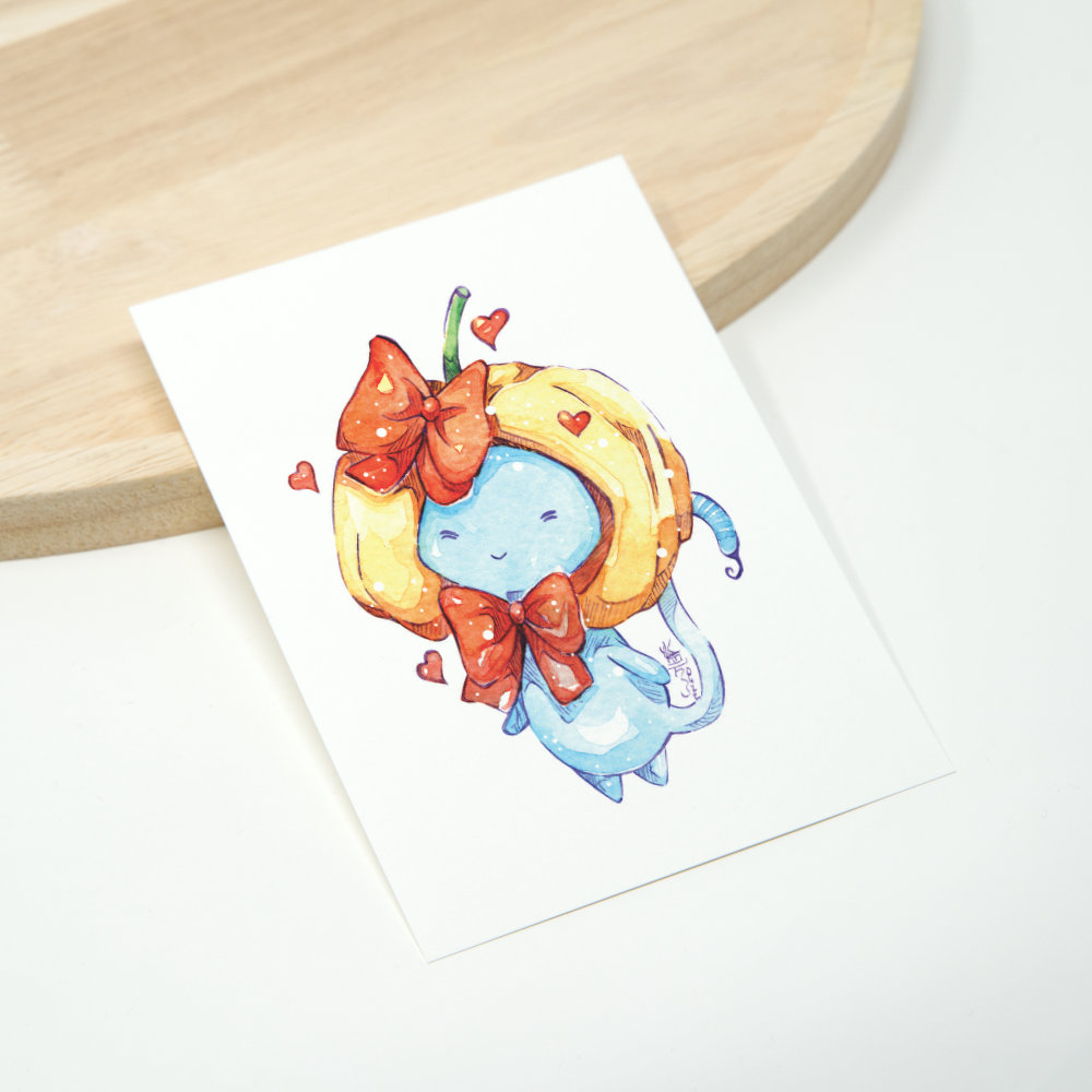 Die Motive wurden mit Aquarell kreiert. Gedruckt werden sie auf einer A7 Sammelkarte mit mittlerer Steifigkeit (200 g feines Papier, matt, warmweiß, leicht texturiert).