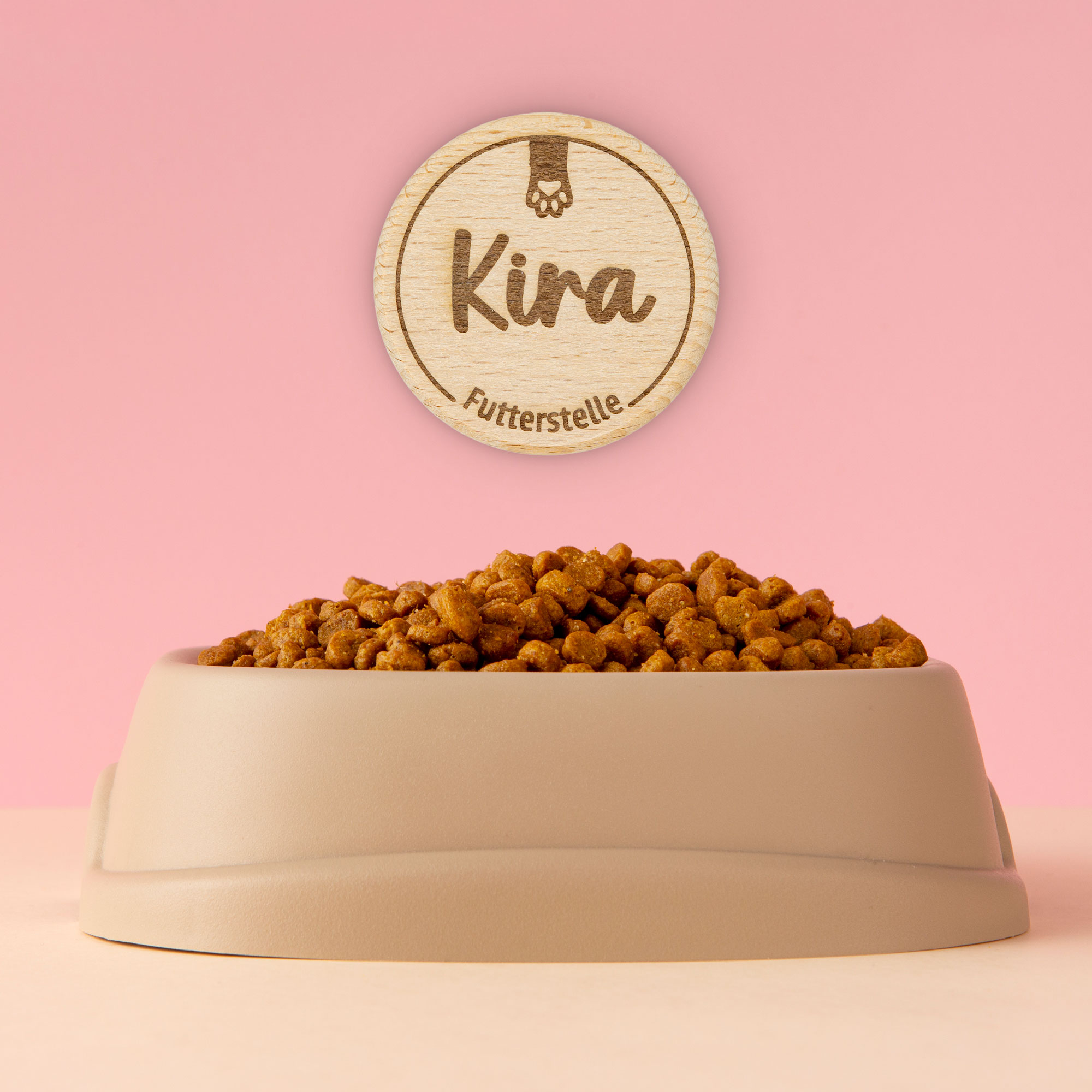 Dieses kleine Holzschild macht die Futterstelle deiner Katze zu einem festen Platz im Alltag. Mit dem eingravierten Namen bekommt der Napf einen ruhigen, persönlichen Rahmen. Schlicht gestaltet, aus leichtem Holz gefertigt und genau dort platziert, wo täglich gefressen, geschnurrt und zufrieden davongezogen wird.