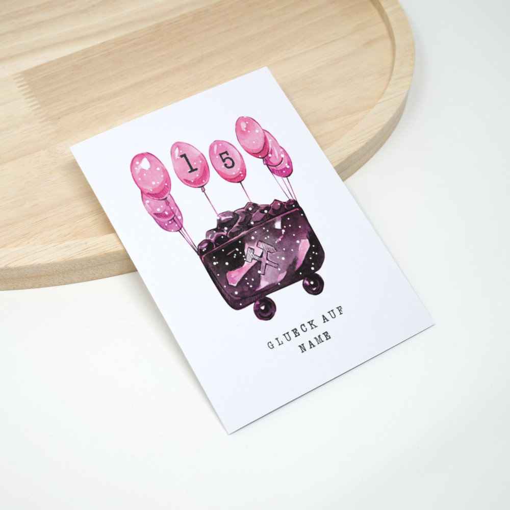 Die Glück Auf Karte kann mit einem Wunschnamen und einem Wunschalter personalisiert werden.