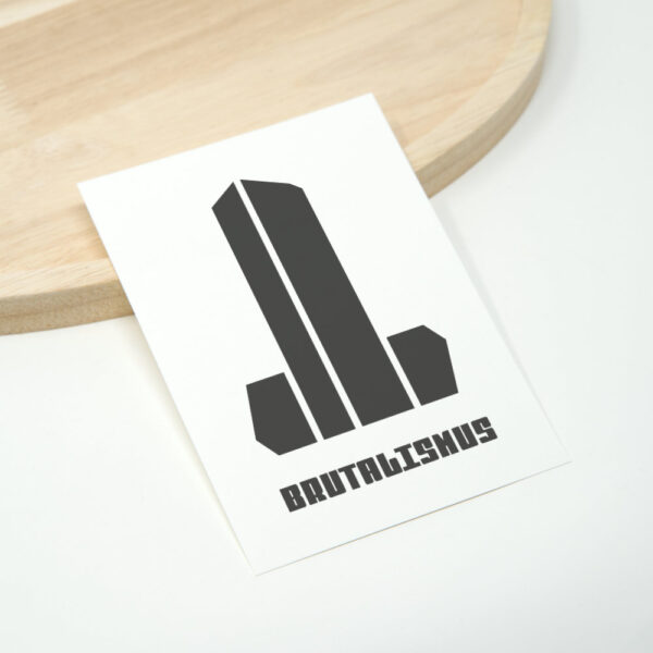 Der Brutalismus steht für rohe Formen, Sichtbarkeit von Struktur und das bewusste Weglassen von Schmuck. Genau diese Prinzipien spiegelt dieses Motiv wider. Klare Linien, reduzierte Gestaltung und eine Bildsprache, die nichts versteckt. Der Humor liegt nicht im Detail, sondern in der konsequenten Umsetzung.