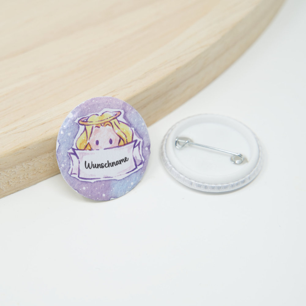 Jeder Button wird von uns per Hand gefertigt. Daher kann es sein, dass die Nadel hinten nicht immer 100 % horizontal ist. Auch das Motiv kann sich um wenige Millimeter verschieben.