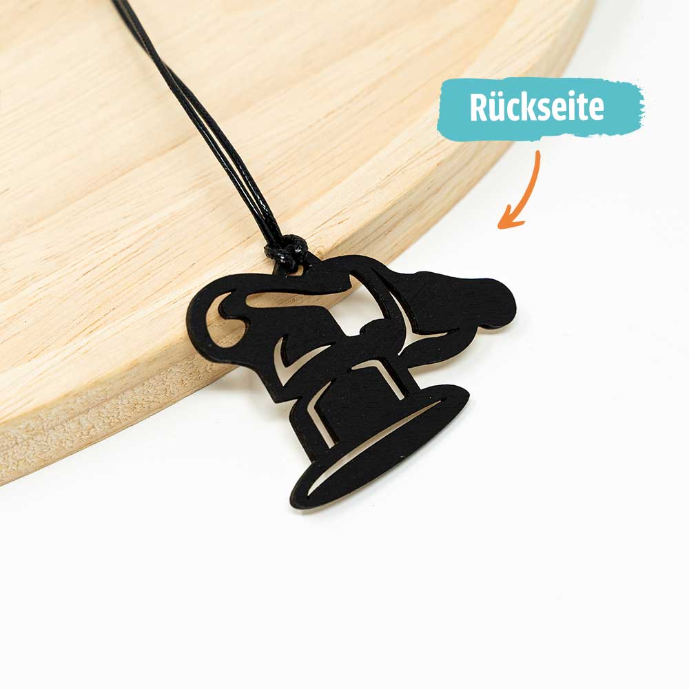 Als Detailing Anhänger aus Holz ist die Poliermaschine mehr als nur ein Motiv. Sie ist ein Erkennungszeichen unter Gleichgesinnten. Wer im Detailing zu Hause ist, weiß sofort, was gemeint ist. Die Vorderseite zeigt das Motiv in naturbelassenem Holz mit seiner ganz eigenen Maserung, die Rückseite wird bei uns von Hand mit schwarzer Acrylfarbe bemalt. Kein Anhänger sieht exakt wie der andere aus.